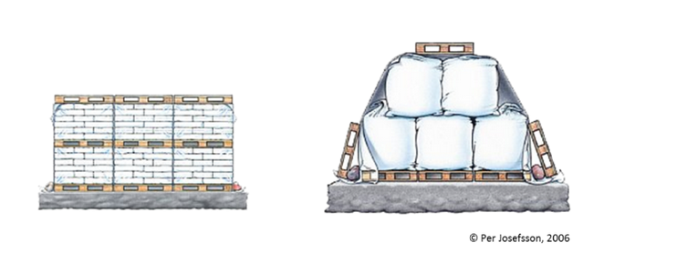 - Kako biste očuvali kvalitet proizvoda, na vrh gomile vreća postavite sloj praznih paleta pa tek posle toga stavite navlaku: tako ćete izbeći propadanje proizvoda usled izloženosti toplini (u skladu sa savetima proizvođača ili dobavljača).
